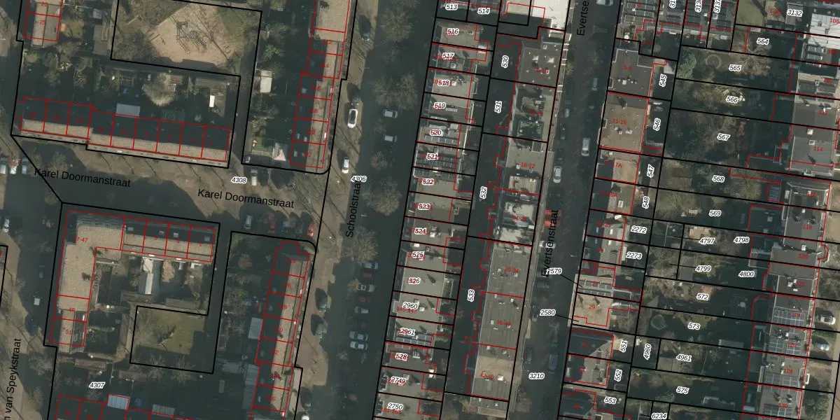 Het perceel waarop Schoolstraat 131 staat heeft een oppervlakte van 93 m². Dit is een klein perceel. De perceeloppervlakte wordt geregistreerd door het Kadaster. Gedetailleerde informatie over de maten van dit perceel kunt u vinden in het rapport Kadastrale kaart met maatvoering van Schoolstraat 131.
