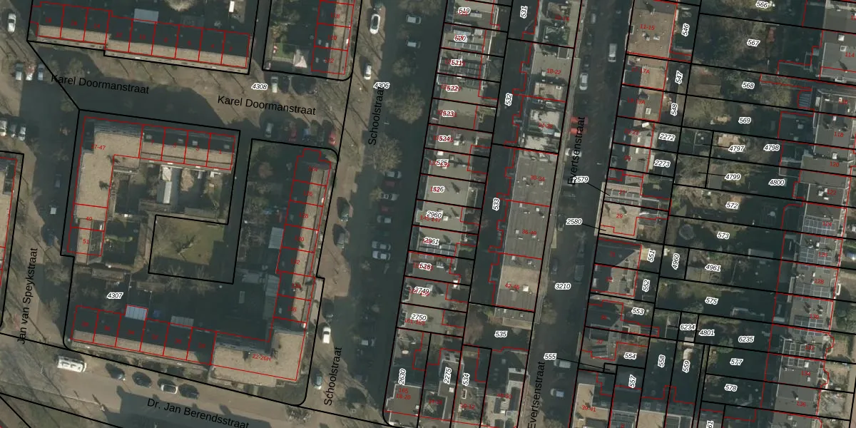 Het perceel waarop Schoolstraat 147 staat heeft een oppervlakte van 93 m². Dit is een klein perceel. De perceeloppervlakte wordt geregistreerd door het Kadaster. Gedetailleerde informatie over de maten van dit perceel kunt u vinden in het rapport Kadastrale kaart met maatvoering van Schoolstraat 147.