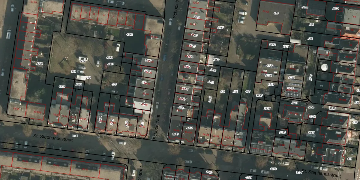 Het perceel waarop Schoolstraat 65 staat heeft een oppervlakte van 88 m². Dit is een klein perceel. De perceeloppervlakte wordt geregistreerd door het Kadaster. Gedetailleerde informatie over de maten van dit perceel kunt u vinden in het rapport Kadastrale kaart met maatvoering van Schoolstraat 65.