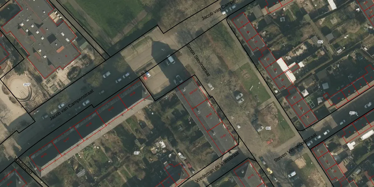 Simon Stevinstraat 107 is gelegen op kadastraal perceel NBH00H867. Deze kadastrale aanduiding is uniek en wordt gebruikt door het Kadaster om eigendomsrechten en andere zakelijke rechten vast te leggen. Het perceel maakt onderdeel uit van de kadastrale gemeente Neerbosch.