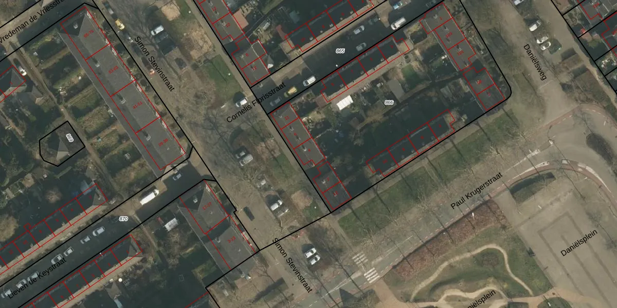 Het perceel waarop Simon Stevinstraat 4 staat heeft een oppervlakte van 2730 m². Dit is een zeer groot perceel. De perceeloppervlakte wordt geregistreerd door het Kadaster. Gedetailleerde informatie over de maten van dit perceel kunt u vinden in het rapport Kadastrale kaart met maatvoering van Simon Stevinstraat 4.