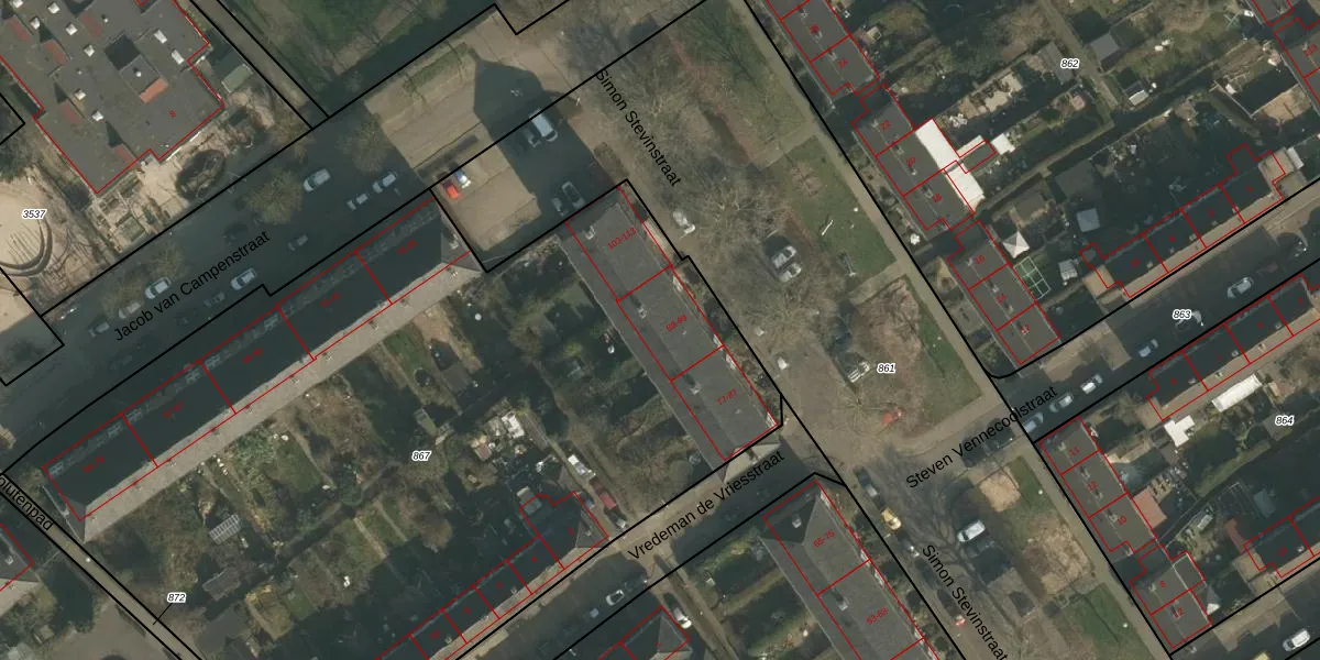 Het perceel waarop Simon Stevinstraat 89 staat heeft een oppervlakte van 5600 m². Dit is een zeer groot perceel. De perceeloppervlakte wordt geregistreerd door het Kadaster. Gedetailleerde informatie over de maten van dit perceel kunt u vinden in het rapport Kadastrale kaart met maatvoering van Simon Stevinstraat 89.