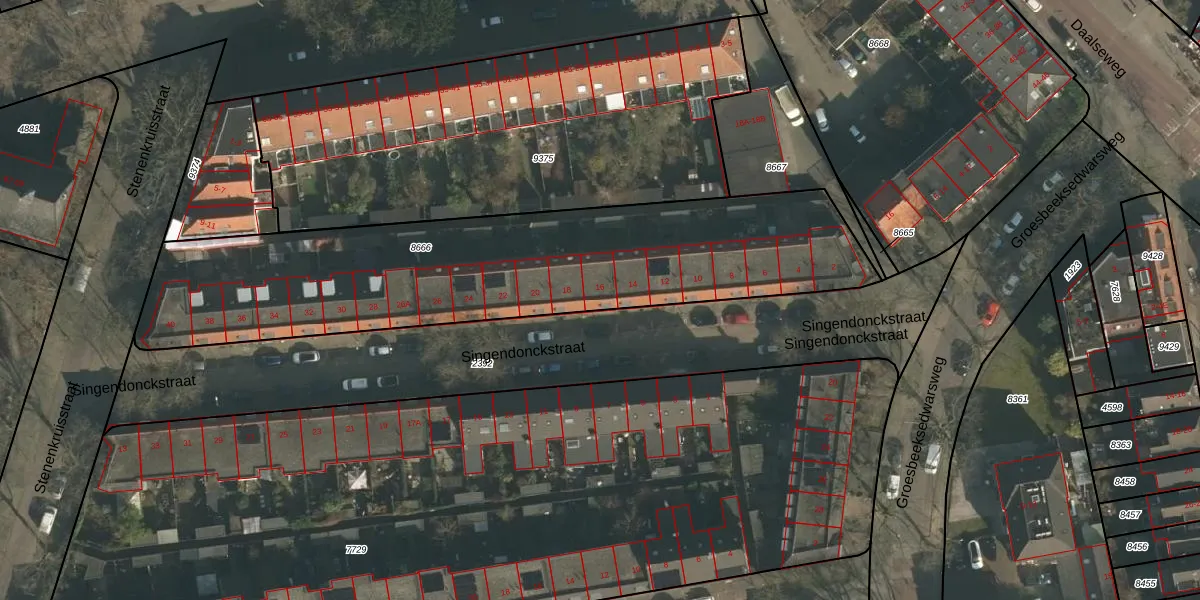 Singendonckstraat 16 is gelegen op kadastraal perceel HTT02A8666. Deze kadastrale aanduiding is uniek en wordt gebruikt door het Kadaster om eigendomsrechten en andere zakelijke rechten vast te leggen. Het perceel maakt onderdeel uit van de kadastrale gemeente Hatert.