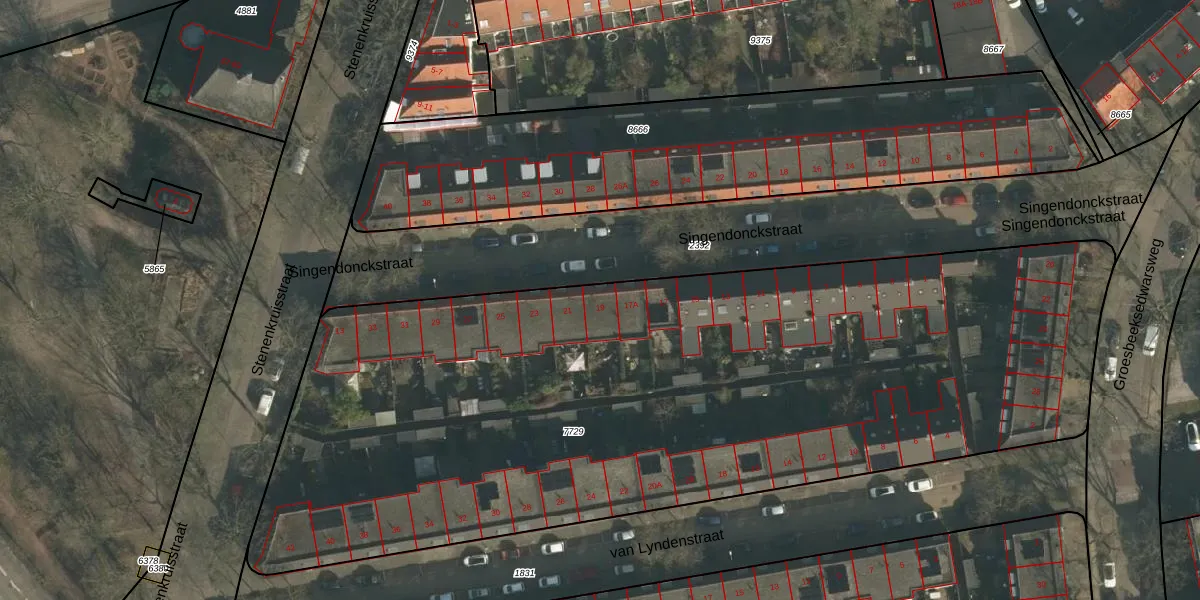 Het perceel waarop Singendonckstraat 19 staat heeft een oppervlakte van 5196 m². Dit is een zeer groot perceel. De perceeloppervlakte wordt geregistreerd door het Kadaster. Gedetailleerde informatie over de maten van dit perceel kunt u vinden in het rapport Kadastrale kaart met maatvoering van Singendonckstraat 19.