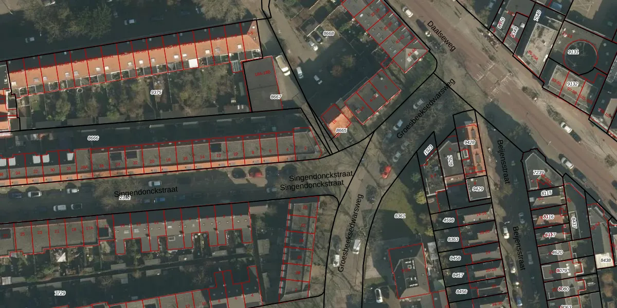Het perceel waarop Singendonckstraat 2 staat heeft een oppervlakte van 2046 m². Dit is een zeer groot perceel. De perceeloppervlakte wordt geregistreerd door het Kadaster. Gedetailleerde informatie over de maten van dit perceel kunt u vinden in het rapport Kadastrale kaart met maatvoering van Singendonckstraat 2.
