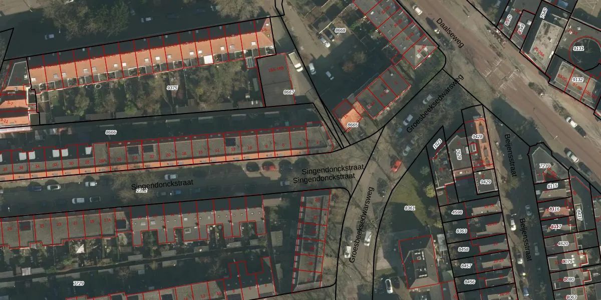 Het perceel waarop Singendonckstraat 4 staat heeft een oppervlakte van 2046 m². Dit is een zeer groot perceel. De perceeloppervlakte wordt geregistreerd door het Kadaster. Gedetailleerde informatie over de maten van dit perceel kunt u vinden in het rapport Kadastrale kaart met maatvoering van Singendonckstraat 4.