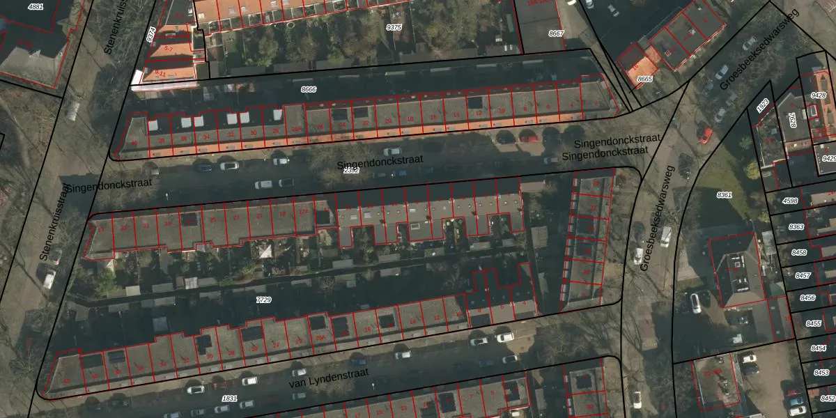 Het perceel waarop Singendonckstraat 9 staat heeft een oppervlakte van 5196 m². Dit is een zeer groot perceel. De perceeloppervlakte wordt geregistreerd door het Kadaster. Gedetailleerde informatie over de maten van dit perceel kunt u vinden in het rapport Kadastrale kaart met maatvoering van Singendonckstraat 9.