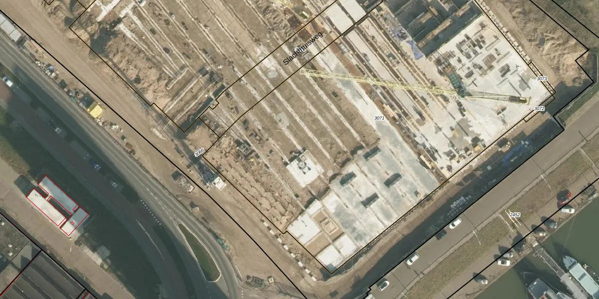 Het perceel waarop Slachthuisweg 16 staat heeft een oppervlakte van 5978 m². Dit is een zeer groot perceel. De perceeloppervlakte wordt geregistreerd door het Kadaster. Gedetailleerde informatie over de maten van dit perceel kunt u vinden in het rapport Kadastrale kaart met maatvoering van Slachthuisweg 16.