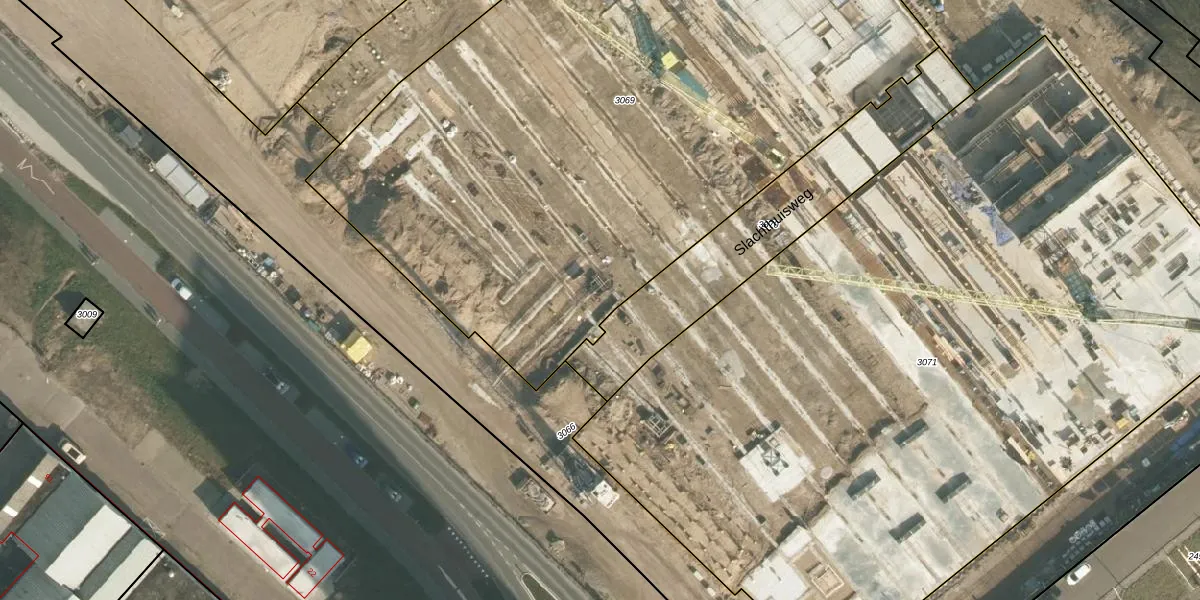 Het perceel waarop Slachthuisweg 9 staat heeft een oppervlakte van 4850 m². Dit is een zeer groot perceel. De perceeloppervlakte wordt geregistreerd door het Kadaster. Gedetailleerde informatie over de maten van dit perceel kunt u vinden in het rapport Kadastrale kaart met maatvoering van Slachthuisweg 9.