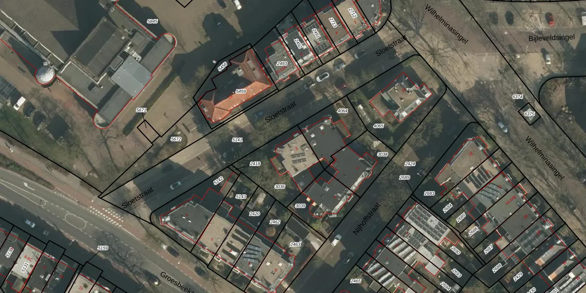 Het perceel waarop Sloetstraat 3 staat heeft een oppervlakte van 449 m². Dit is een groot perceel. De perceeloppervlakte wordt geregistreerd door het Kadaster. Gedetailleerde informatie over de maten van dit perceel kunt u vinden in het rapport Kadastrale kaart met maatvoering van Sloetstraat 3.