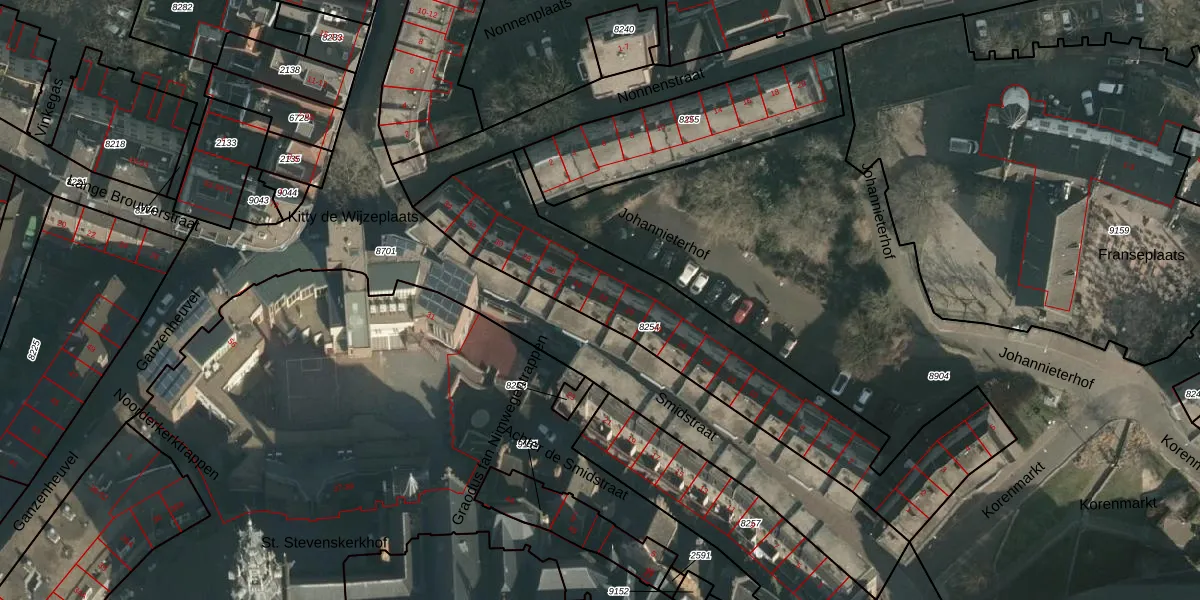 Smidstraat 22 is gelegen op kadastraal perceel NMG00C8254. Deze kadastrale aanduiding is uniek en wordt gebruikt door het Kadaster om eigendomsrechten en andere zakelijke rechten vast te leggen. Het perceel maakt onderdeel uit van de kadastrale gemeente Nijmegen.