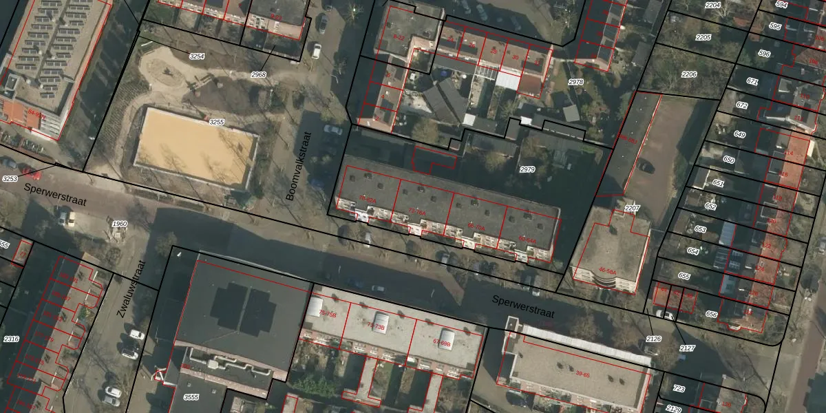 Sperwerstraat 74 is gelegen op kadastraal perceel NBH00I2979. Deze kadastrale aanduiding is uniek en wordt gebruikt door het Kadaster om eigendomsrechten en andere zakelijke rechten vast te leggen. Het perceel maakt onderdeel uit van de kadastrale gemeente Neerbosch.