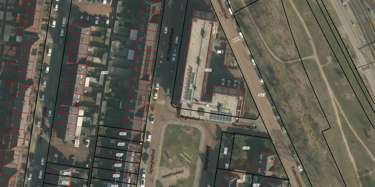 Spieghelhof 13 is gelegen op kadastraal perceel HTT02M5781. Deze kadastrale aanduiding is uniek en wordt gebruikt door het Kadaster om eigendomsrechten en andere zakelijke rechten vast te leggen. Het perceel maakt onderdeel uit van de kadastrale gemeente Hatert.