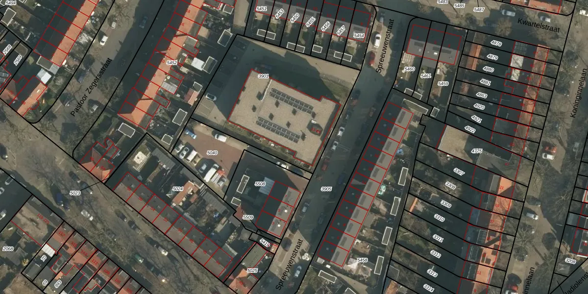 Spreeuwenstraat 13 is gelegen op kadastraal perceel NBH00B3901. Deze kadastrale aanduiding is uniek en wordt gebruikt door het Kadaster om eigendomsrechten en andere zakelijke rechten vast te leggen. Het perceel maakt onderdeel uit van de kadastrale gemeente Neerbosch.
