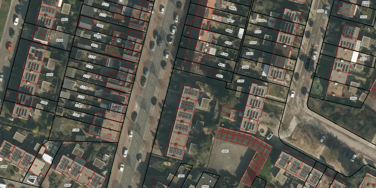 St. Jacobslaan 545 is gelegen op kadastraal perceel HTT02L5992. Deze kadastrale aanduiding is uniek en wordt gebruikt door het Kadaster om eigendomsrechten en andere zakelijke rechten vast te leggen. Het perceel maakt onderdeel uit van de kadastrale gemeente Hatert.