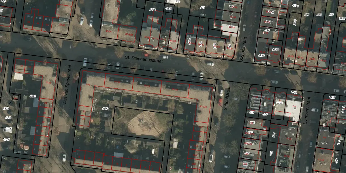 Het perceel waarop St. Stephanusstraat 29 staat heeft een oppervlakte van 3830 m². Dit is een zeer groot perceel. De perceeloppervlakte wordt geregistreerd door het Kadaster. Gedetailleerde informatie over de maten van dit perceel kunt u vinden in het rapport Kadastrale kaart met maatvoering van St. Stephanusstraat 29.