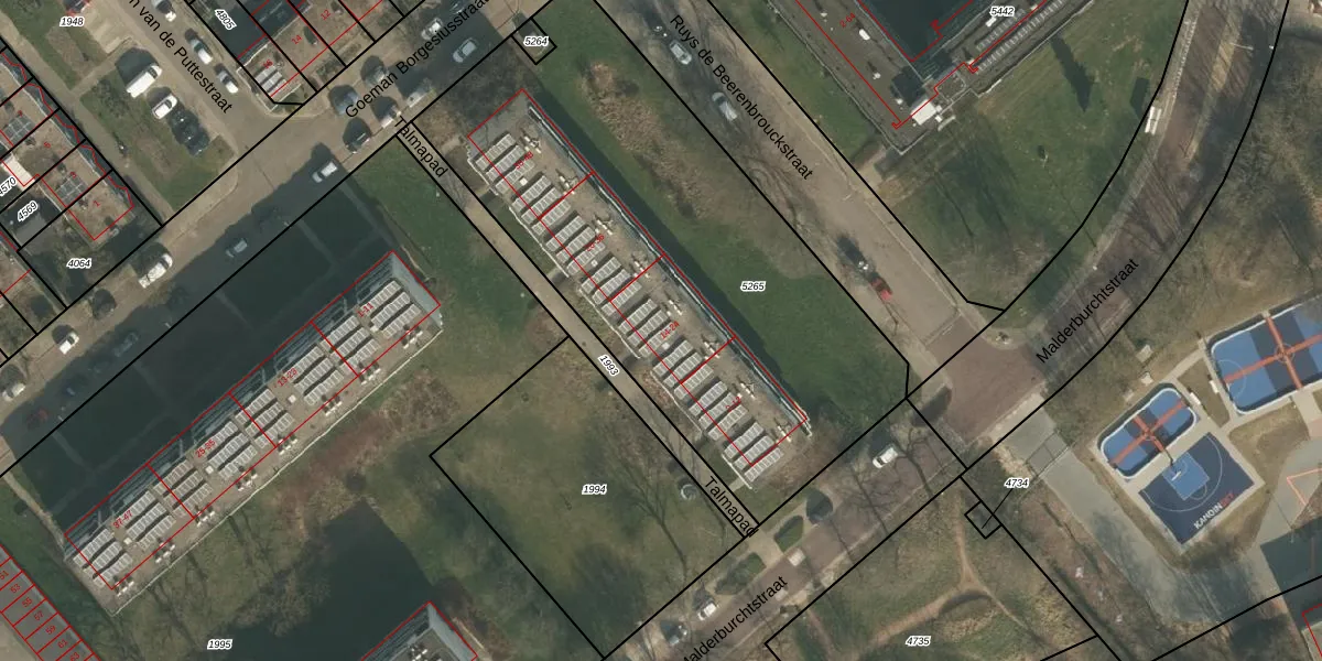 Het perceel waarop Talmapad 18 staat heeft een oppervlakte van 2629 m². Dit is een zeer groot perceel. De perceeloppervlakte wordt geregistreerd door het Kadaster. Gedetailleerde informatie over de maten van dit perceel kunt u vinden in het rapport Kadastrale kaart met maatvoering van Talmapad 18.