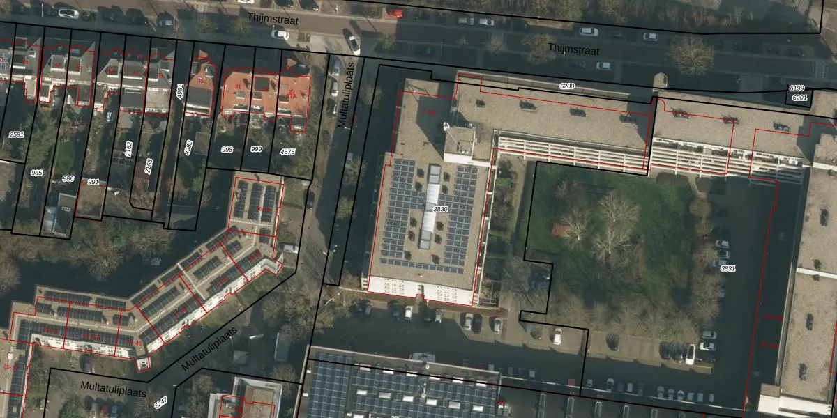 Het perceel waarop Thijmstraat 11-C staat heeft een oppervlakte van 3910 m². Dit is een zeer groot perceel. De perceeloppervlakte wordt geregistreerd door het Kadaster. Gedetailleerde informatie over de maten van dit perceel kunt u vinden in het rapport Kadastrale kaart met maatvoering van Thijmstraat 11-C.