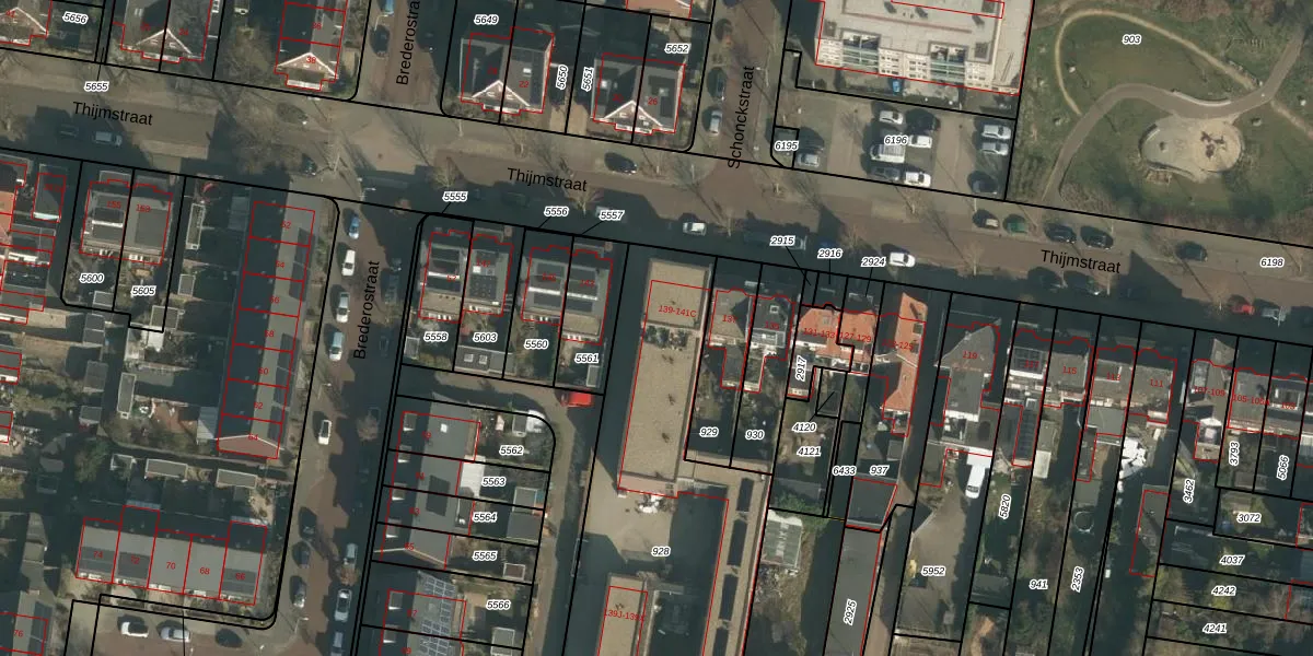 Het perceel waarop Thijmstraat 139 staat heeft een oppervlakte van 2168 m². Dit is een zeer groot perceel. De perceeloppervlakte wordt geregistreerd door het Kadaster. Gedetailleerde informatie over de maten van dit perceel kunt u vinden in het rapport Kadastrale kaart met maatvoering van Thijmstraat 139.