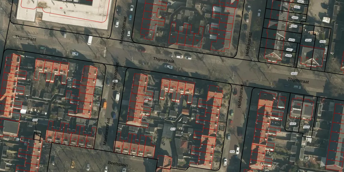 Het perceel waarop Thijmstraat 163 staat heeft een oppervlakte van 3210 m². Dit is een zeer groot perceel. De perceeloppervlakte wordt geregistreerd door het Kadaster. Gedetailleerde informatie over de maten van dit perceel kunt u vinden in het rapport Kadastrale kaart met maatvoering van Thijmstraat 163.