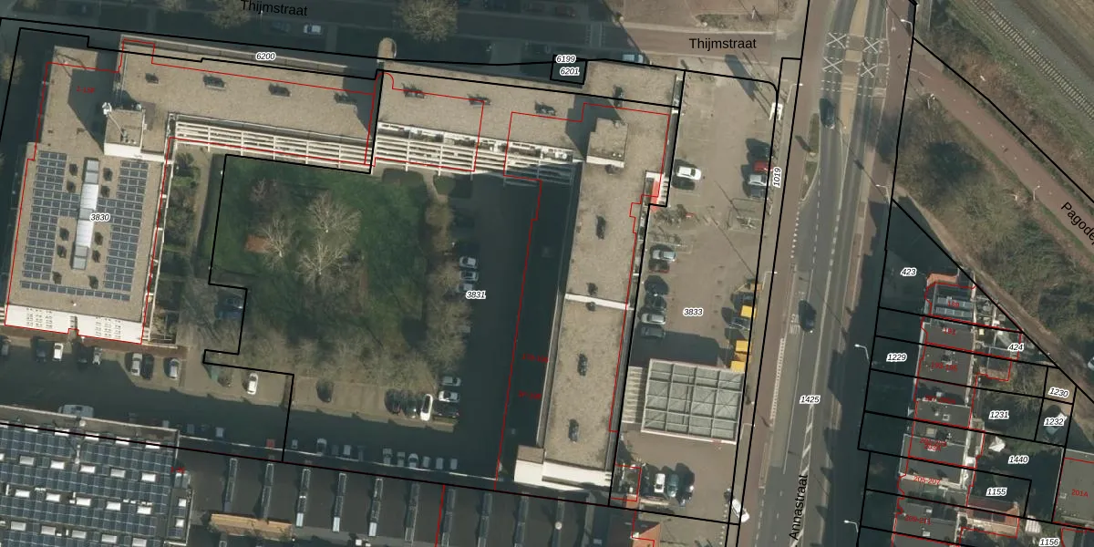 Het perceel waarop Thijmstraat 19-C staat heeft een oppervlakte van 4900 m². Dit is een zeer groot perceel. De perceeloppervlakte wordt geregistreerd door het Kadaster. Gedetailleerde informatie over de maten van dit perceel kunt u vinden in het rapport Kadastrale kaart met maatvoering van Thijmstraat 19-C.