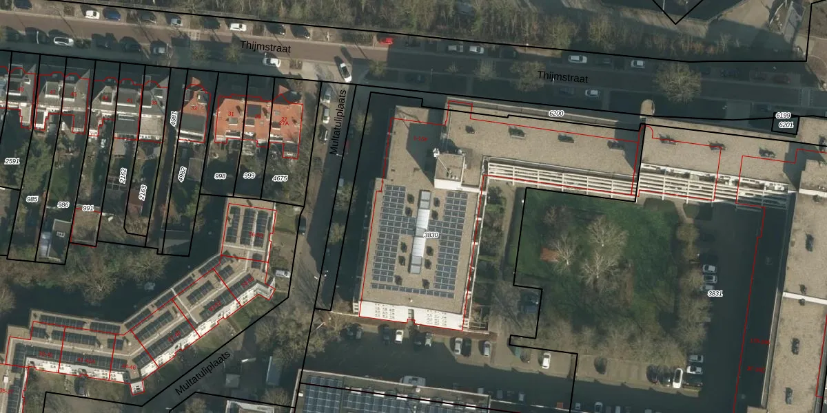 Het perceel waarop Thijmstraat 7-E staat heeft een oppervlakte van 3910 m². Dit is een zeer groot perceel. De perceeloppervlakte wordt geregistreerd door het Kadaster. Gedetailleerde informatie over de maten van dit perceel kunt u vinden in het rapport Kadastrale kaart met maatvoering van Thijmstraat 7-E.