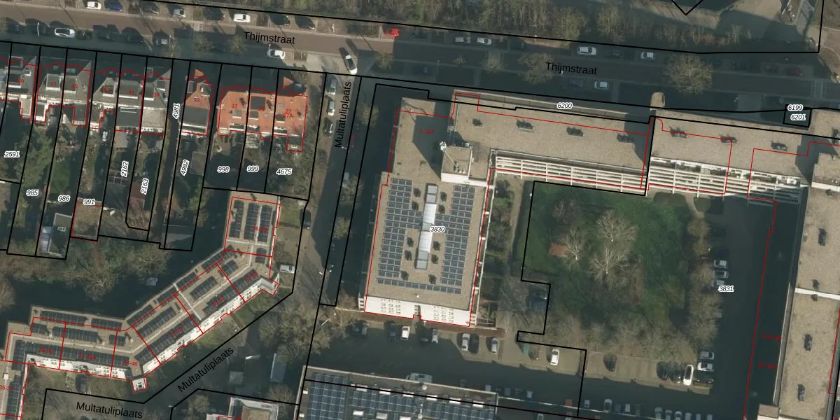Het perceel waarop Thijmstraat 9-E staat heeft een oppervlakte van 3910 m². Dit is een zeer groot perceel. De perceeloppervlakte wordt geregistreerd door het Kadaster. Gedetailleerde informatie over de maten van dit perceel kunt u vinden in het rapport Kadastrale kaart met maatvoering van Thijmstraat 9-E.
