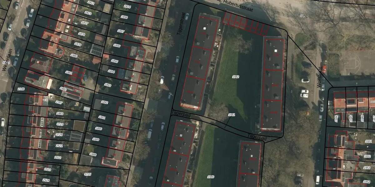 Het perceel waarop Tijgerstraat 41 staat heeft een oppervlakte van 3290 m². Dit is een zeer groot perceel. De perceeloppervlakte wordt geregistreerd door het Kadaster. Gedetailleerde informatie over de maten van dit perceel kunt u vinden in het rapport Kadastrale kaart met maatvoering van Tijgerstraat 41.