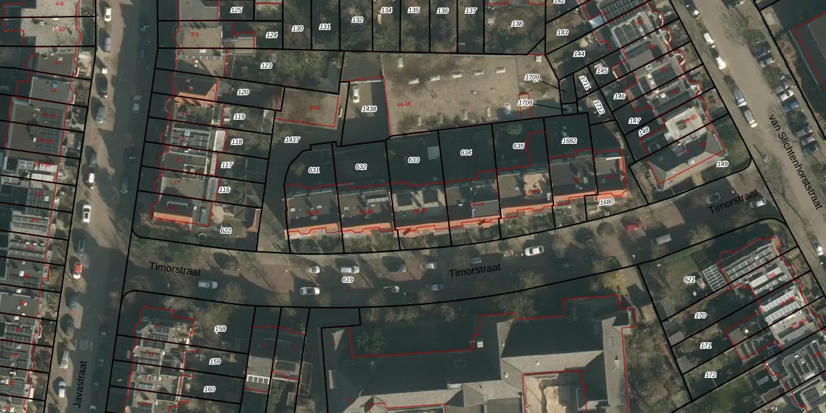 Het perceel waarop Timorstraat 30 staat heeft een oppervlakte van 361 m². Dit is een groot perceel. De perceeloppervlakte wordt geregistreerd door het Kadaster. Gedetailleerde informatie over de maten van dit perceel kunt u vinden in het rapport Kadastrale kaart met maatvoering van Timorstraat 30.