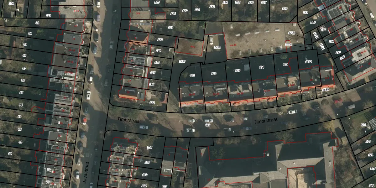 Het perceel waarop Timorstraat 42 staat heeft een oppervlakte van 339 m². Dit is een groot perceel. De perceeloppervlakte wordt geregistreerd door het Kadaster. Gedetailleerde informatie over de maten van dit perceel kunt u vinden in het rapport Kadastrale kaart met maatvoering van Timorstraat 42.