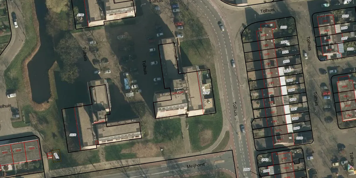 Het perceel waarop Tolhuis 1221 staat heeft een oppervlakte van 835 m². Dit is een groot perceel. De perceeloppervlakte wordt geregistreerd door het Kadaster. Gedetailleerde informatie over de maten van dit perceel kunt u vinden in het rapport Kadastrale kaart met maatvoering van Tolhuis 1221.