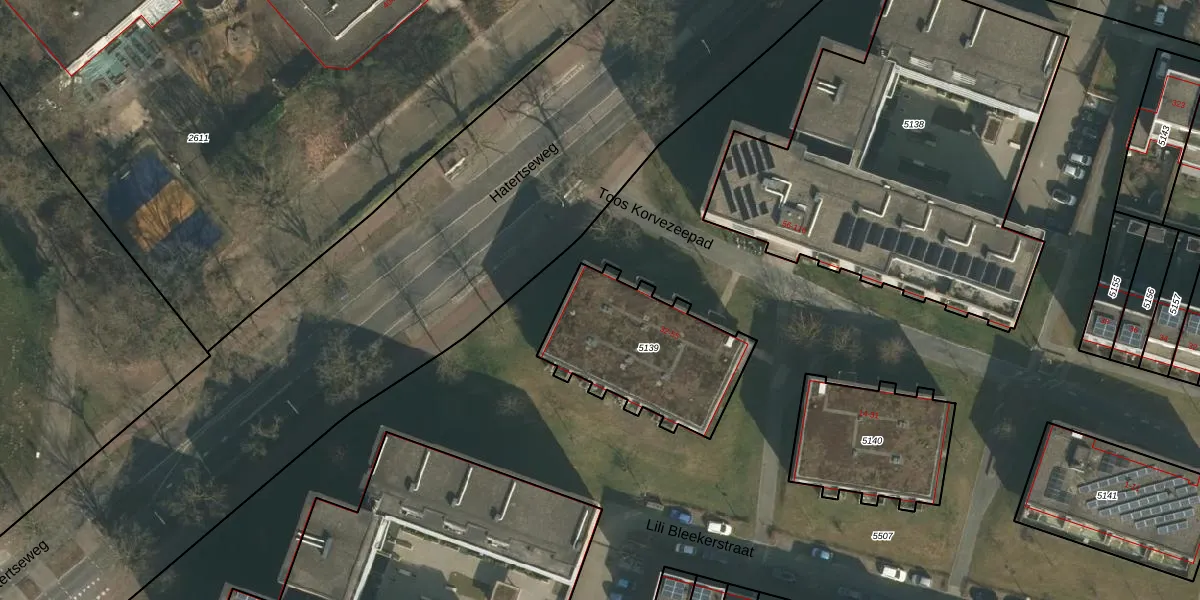 Toos Korvezeepad 44 is gelegen op kadastraal perceel HTT02D5139. Deze kadastrale aanduiding is uniek en wordt gebruikt door het Kadaster om eigendomsrechten en andere zakelijke rechten vast te leggen. Het perceel maakt onderdeel uit van de kadastrale gemeente Hatert.