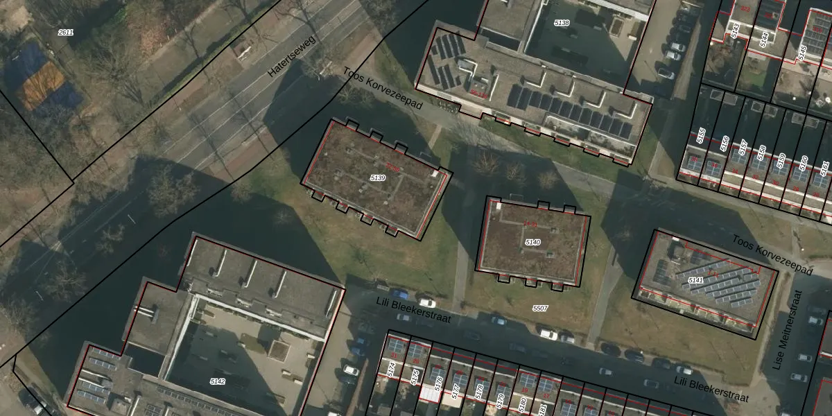 Het perceel waarop Toos Korvezeepad 48 staat heeft een oppervlakte van 587 m². Dit is een groot perceel. De perceeloppervlakte wordt geregistreerd door het Kadaster. Gedetailleerde informatie over de maten van dit perceel kunt u vinden in het rapport Kadastrale kaart met maatvoering van Toos Korvezeepad 48.