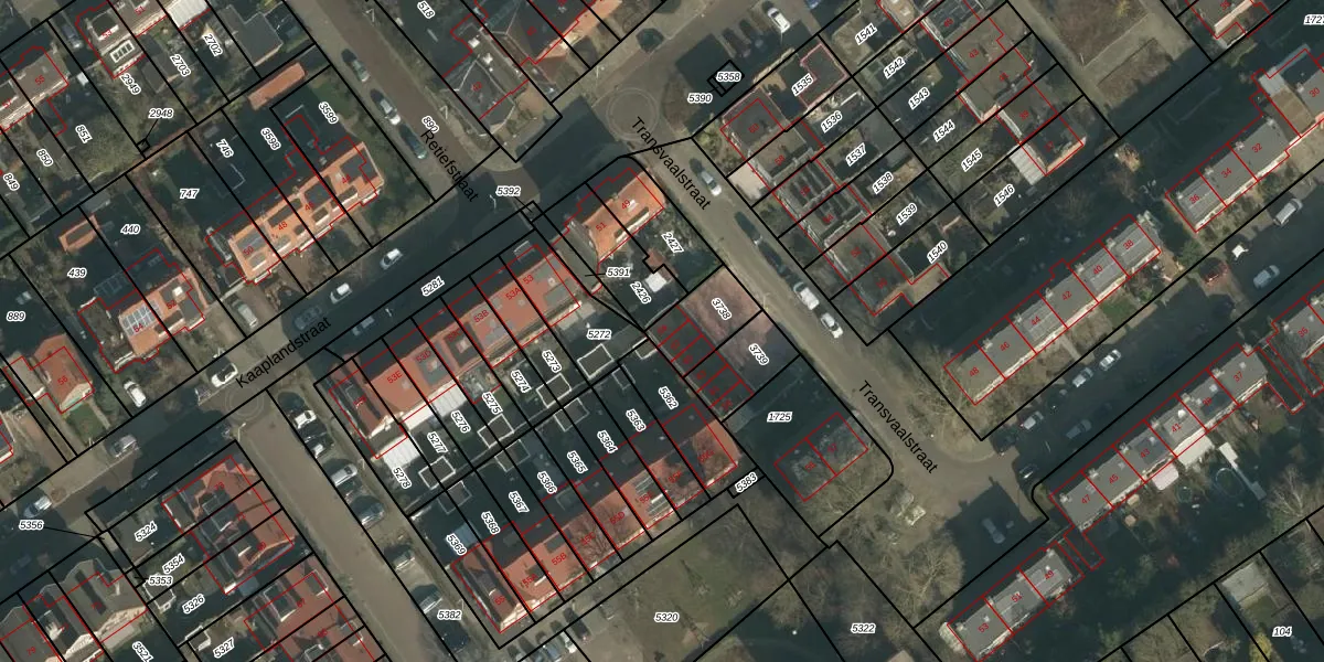 Het perceel waarop Transvaalstraat 69 staat heeft een oppervlakte van 145 m². Dit is een middelgroot perceel. De perceeloppervlakte wordt geregistreerd door het Kadaster. Gedetailleerde informatie over de maten van dit perceel kunt u vinden in het rapport Kadastrale kaart met maatvoering van Transvaalstraat 69.