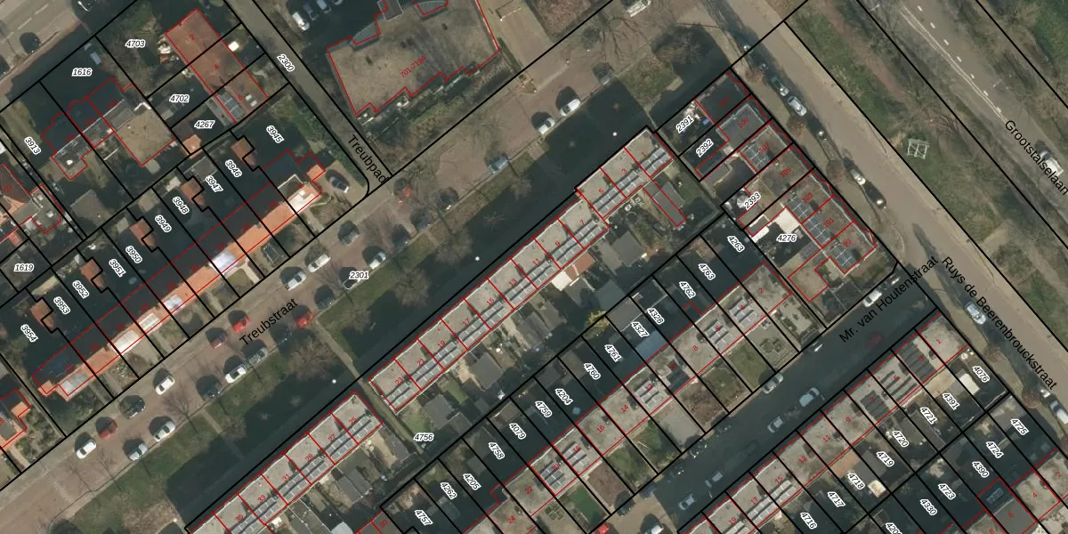 Treubstraat 11 is gelegen op kadastraal perceel HTT02D4756. Deze kadastrale aanduiding is uniek en wordt gebruikt door het Kadaster om eigendomsrechten en andere zakelijke rechten vast te leggen. Het perceel maakt onderdeel uit van de kadastrale gemeente Hatert.