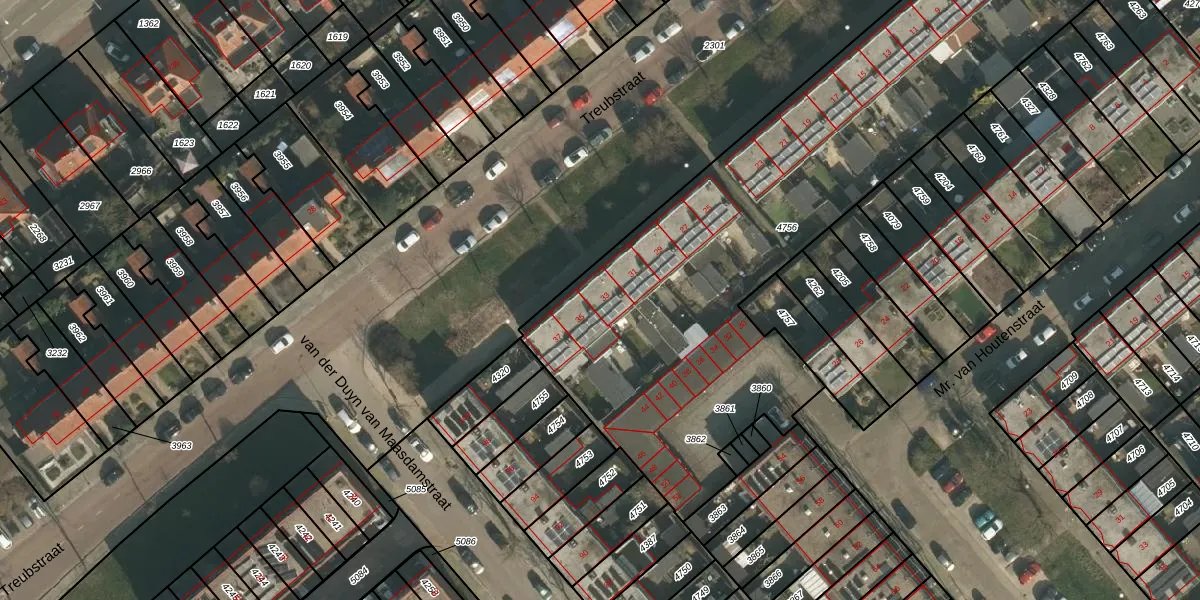 Het perceel waarop Treubstraat 33 staat heeft een oppervlakte van 3153 m². Dit is een zeer groot perceel. De perceeloppervlakte wordt geregistreerd door het Kadaster. Gedetailleerde informatie over de maten van dit perceel kunt u vinden in het rapport Kadastrale kaart met maatvoering van Treubstraat 33.