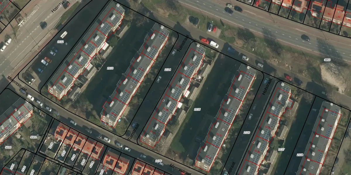 Het perceel waarop Tuinstraat 21 staat heeft een oppervlakte van 3230 m². Dit is een zeer groot perceel. De perceeloppervlakte wordt geregistreerd door het Kadaster. Gedetailleerde informatie over de maten van dit perceel kunt u vinden in het rapport Kadastrale kaart met maatvoering van Tuinstraat 21.