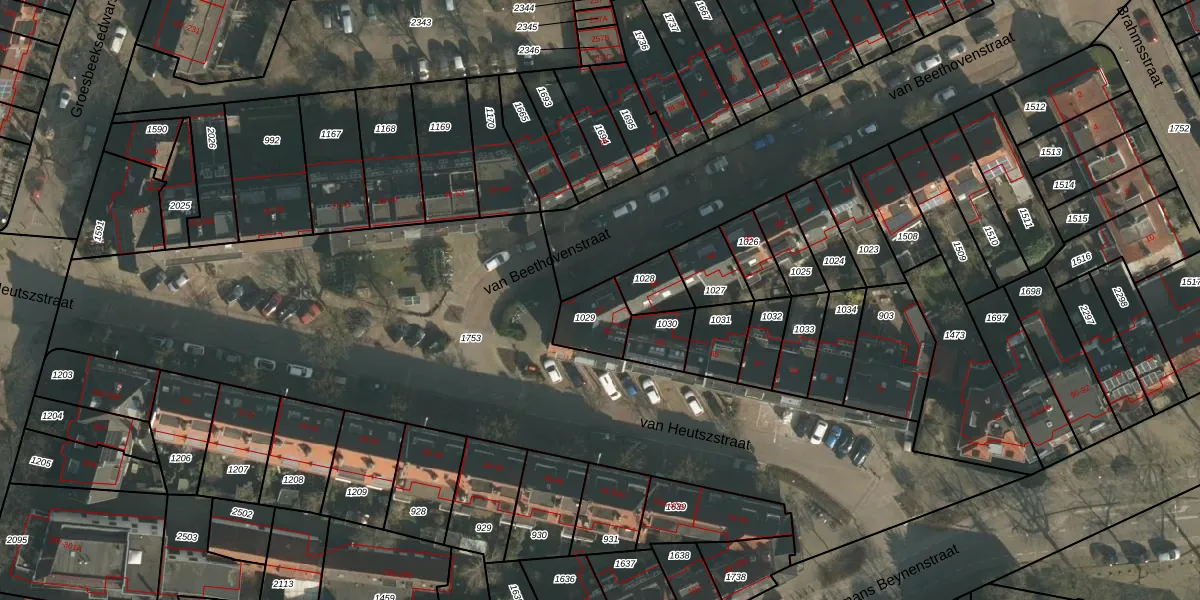 Het perceel waarop van Beethovenstraat 97 staat heeft een oppervlakte van 120 m². Dit is een middelgroot perceel. De perceeloppervlakte wordt geregistreerd door het Kadaster. Gedetailleerde informatie over de maten van dit perceel kunt u vinden in het rapport Kadastrale kaart met maatvoering van van Beethovenstraat 97.