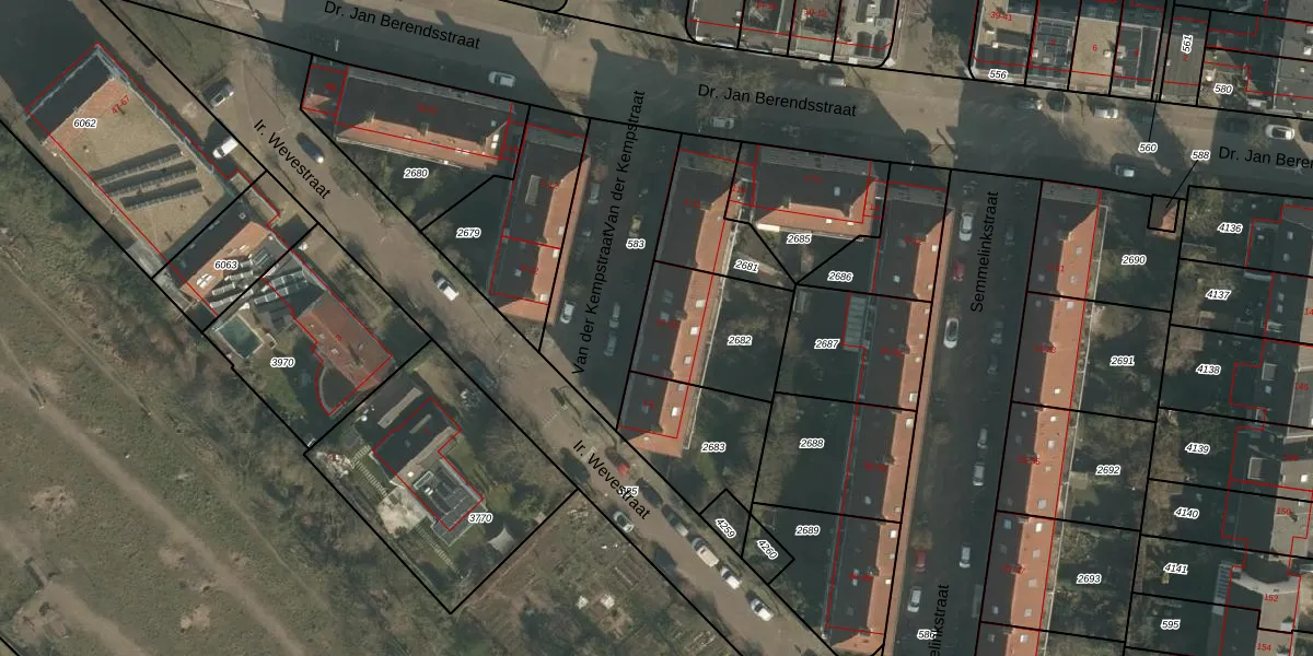 Het perceel waarop Van der Kempstraat 21 staat heeft een oppervlakte van 374 m². Dit is een groot perceel. De perceeloppervlakte wordt geregistreerd door het Kadaster. Gedetailleerde informatie over de maten van dit perceel kunt u vinden in het rapport Kadastrale kaart met maatvoering van Van der Kempstraat 21.