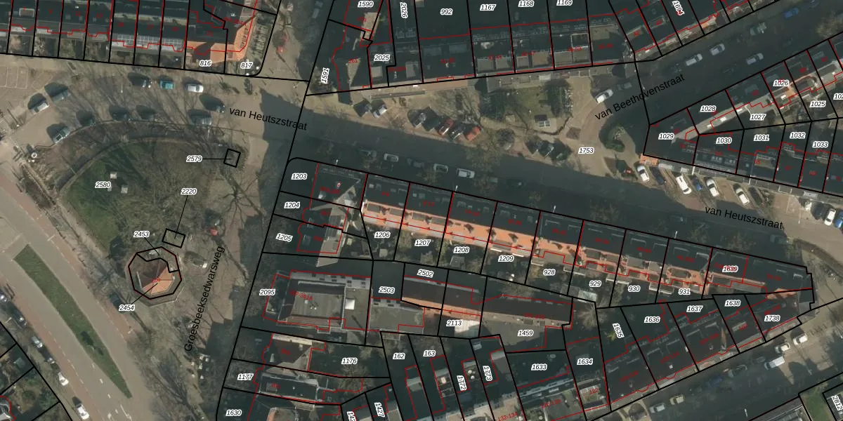 Het perceel waarop van Heutszstraat 12 staat heeft een oppervlakte van 197 m². Dit is een middelgroot perceel. De perceeloppervlakte wordt geregistreerd door het Kadaster. Gedetailleerde informatie over de maten van dit perceel kunt u vinden in het rapport Kadastrale kaart met maatvoering van van Heutszstraat 12.