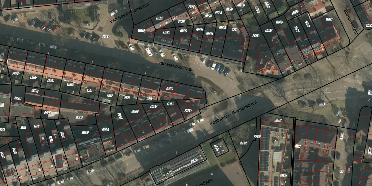 Het perceel waarop van Heutszstraat 52 staat heeft een oppervlakte van 210 m². Dit is een middelgroot perceel. De perceeloppervlakte wordt geregistreerd door het Kadaster. Gedetailleerde informatie over de maten van dit perceel kunt u vinden in het rapport Kadastrale kaart met maatvoering van van Heutszstraat 52.