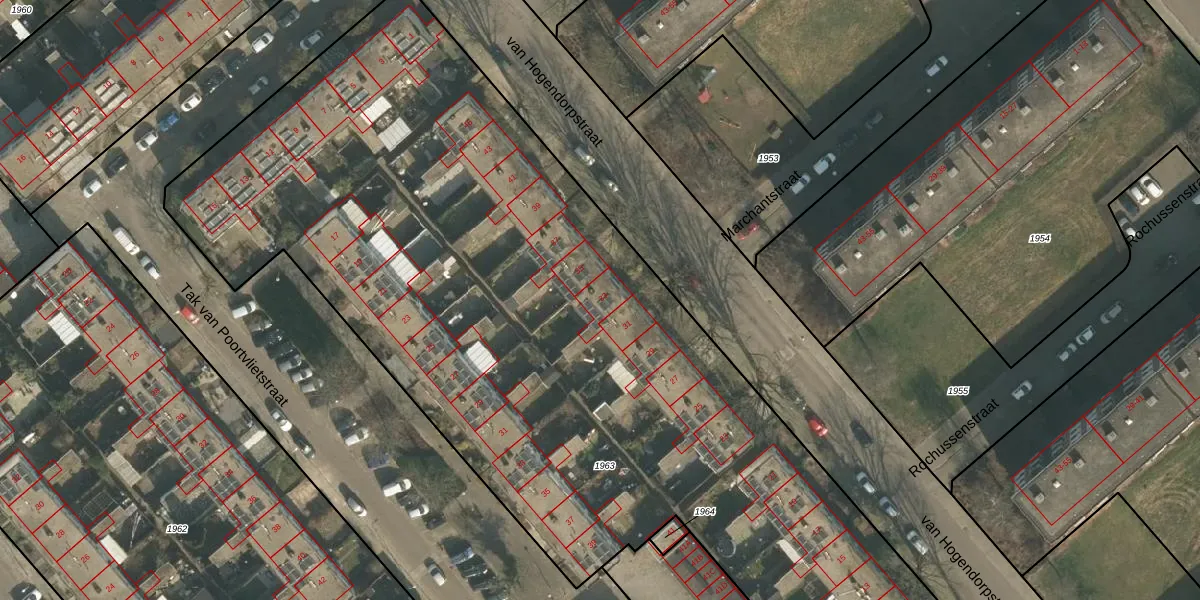 van Hogendorpstraat 33 is gelegen op kadastraal perceel HTT02D1963. Deze kadastrale aanduiding is uniek en wordt gebruikt door het Kadaster om eigendomsrechten en andere zakelijke rechten vast te leggen. Het perceel maakt onderdeel uit van de kadastrale gemeente Hatert.