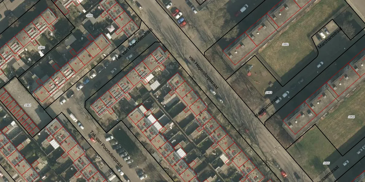 van Hogendorpstraat 43 is gelegen op kadastraal perceel HTT02D1963. Deze kadastrale aanduiding is uniek en wordt gebruikt door het Kadaster om eigendomsrechten en andere zakelijke rechten vast te leggen. Het perceel maakt onderdeel uit van de kadastrale gemeente Hatert.