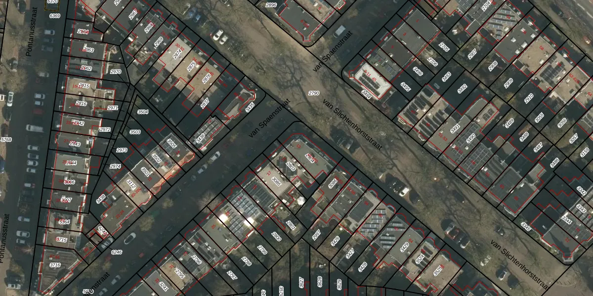 van Spaenstraat 13 is gelegen op kadastraal perceel NMG00B2804. Deze kadastrale aanduiding is uniek en wordt gebruikt door het Kadaster om eigendomsrechten en andere zakelijke rechten vast te leggen. Het perceel maakt onderdeel uit van de kadastrale gemeente Nijmegen.
