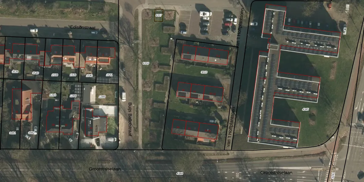 Het perceel waarop van 't Hoffplantsoen 16 staat heeft een oppervlakte van 2007 m². Dit is een zeer groot perceel. De perceeloppervlakte wordt geregistreerd door het Kadaster. Gedetailleerde informatie over de maten van dit perceel kunt u vinden in het rapport Kadastrale kaart met maatvoering van van 't Hoffplantsoen 16.