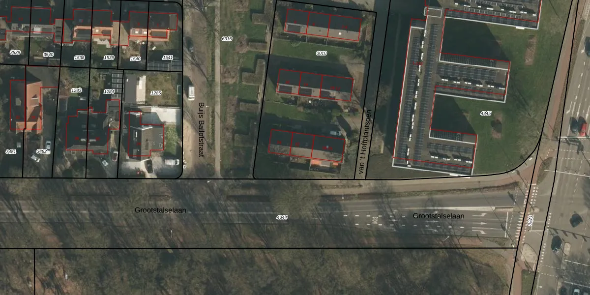 Het perceel waarop van 't Hoffplantsoen 22 staat heeft een oppervlakte van 2007 m². Dit is een zeer groot perceel. De perceeloppervlakte wordt geregistreerd door het Kadaster. Gedetailleerde informatie over de maten van dit perceel kunt u vinden in het rapport Kadastrale kaart met maatvoering van van 't Hoffplantsoen 22.