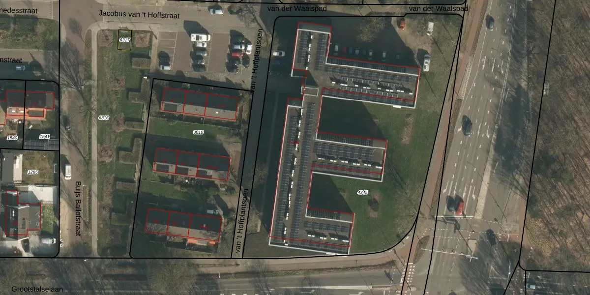 Het perceel waarop van 't Hoffplantsoen 65 staat heeft een oppervlakte van 4830 m². Dit is een zeer groot perceel. De perceeloppervlakte wordt geregistreerd door het Kadaster. Gedetailleerde informatie over de maten van dit perceel kunt u vinden in het rapport Kadastrale kaart met maatvoering van van 't Hoffplantsoen 65.