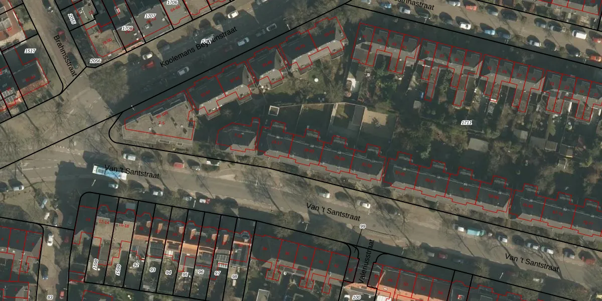 Het perceel waarop Van 't Santstraat 21 staat heeft een oppervlakte van 9063 m². Dit is een zeer groot perceel. De perceeloppervlakte wordt geregistreerd door het Kadaster. Gedetailleerde informatie over de maten van dit perceel kunt u vinden in het rapport Kadastrale kaart met maatvoering van Van 't Santstraat 21.