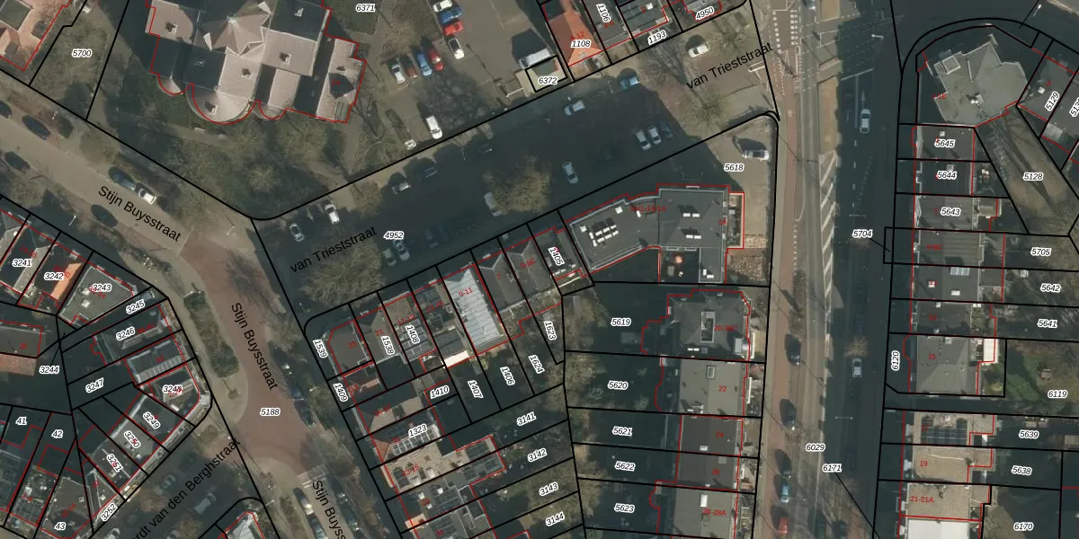 Het perceel waarop van Trieststraat 5-B staat heeft een oppervlakte van 140 m². Dit is een middelgroot perceel. De perceeloppervlakte wordt geregistreerd door het Kadaster. Gedetailleerde informatie over de maten van dit perceel kunt u vinden in het rapport Kadastrale kaart met maatvoering van van Trieststraat 5-B.