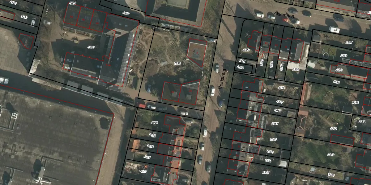 Het perceel waarop Veldstraat 2-A staat heeft een oppervlakte van 1405 m². Dit is een zeer groot perceel. De perceeloppervlakte wordt geregistreerd door het Kadaster. Gedetailleerde informatie over de maten van dit perceel kunt u vinden in het rapport Kadastrale kaart met maatvoering van Veldstraat 2-A.